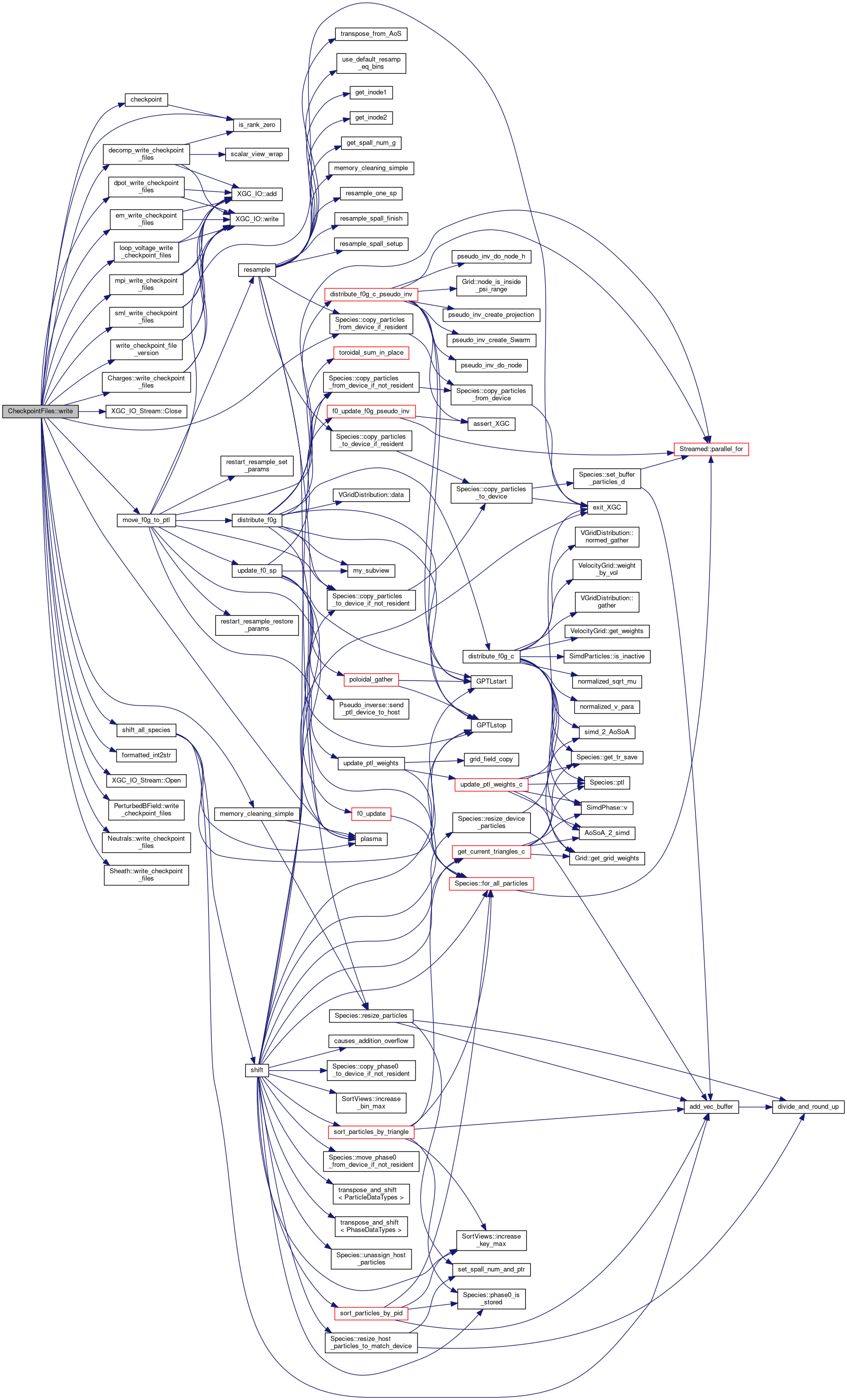 Writes restart files. If at the end of the simulation and resampling is on, data is moved from the phase space mesh into the particle weights first.