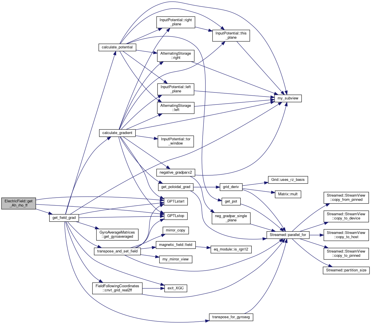 Calculates gyro-averaged electric field, electric potential in field-following coordinates (if XGC1) If EM, also calculates analogous magnetic potential and gradients