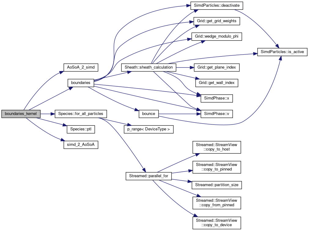 | void | boundaries_kernel (Species< DeviceType > &species, const PushControls &push_controls, const Grid< DeviceType > &grid, const MagneticField< DeviceType > &magnetic_field, const Sheath< DeviceType > &sheath, const WallLoss &wall_loss, const HeatDiagnostics< DeviceType > &heat_diag, Cabana::AoSoA< PhaseDataTypes, DeviceType, VEC_LEN > &phase0, View< int *, CLayout, DeviceType > ¤t_tr) |