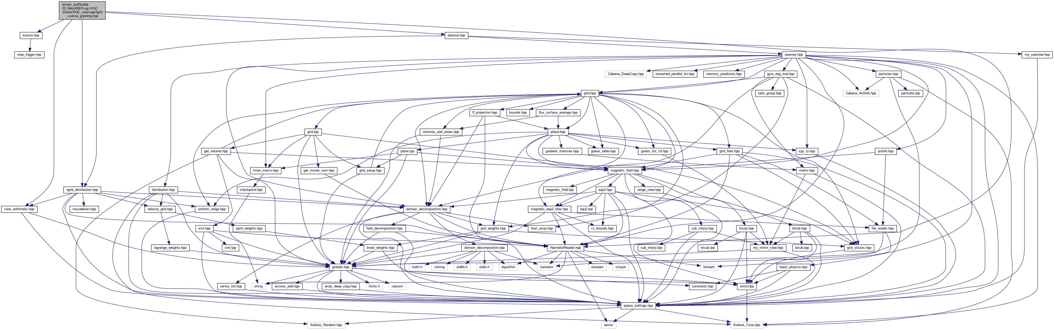 The class implements a coarse-graining function that moves a small fraction \(\alpha\,f_{g}\) of the distribution function on the 5D phase space mesh to the marker particles