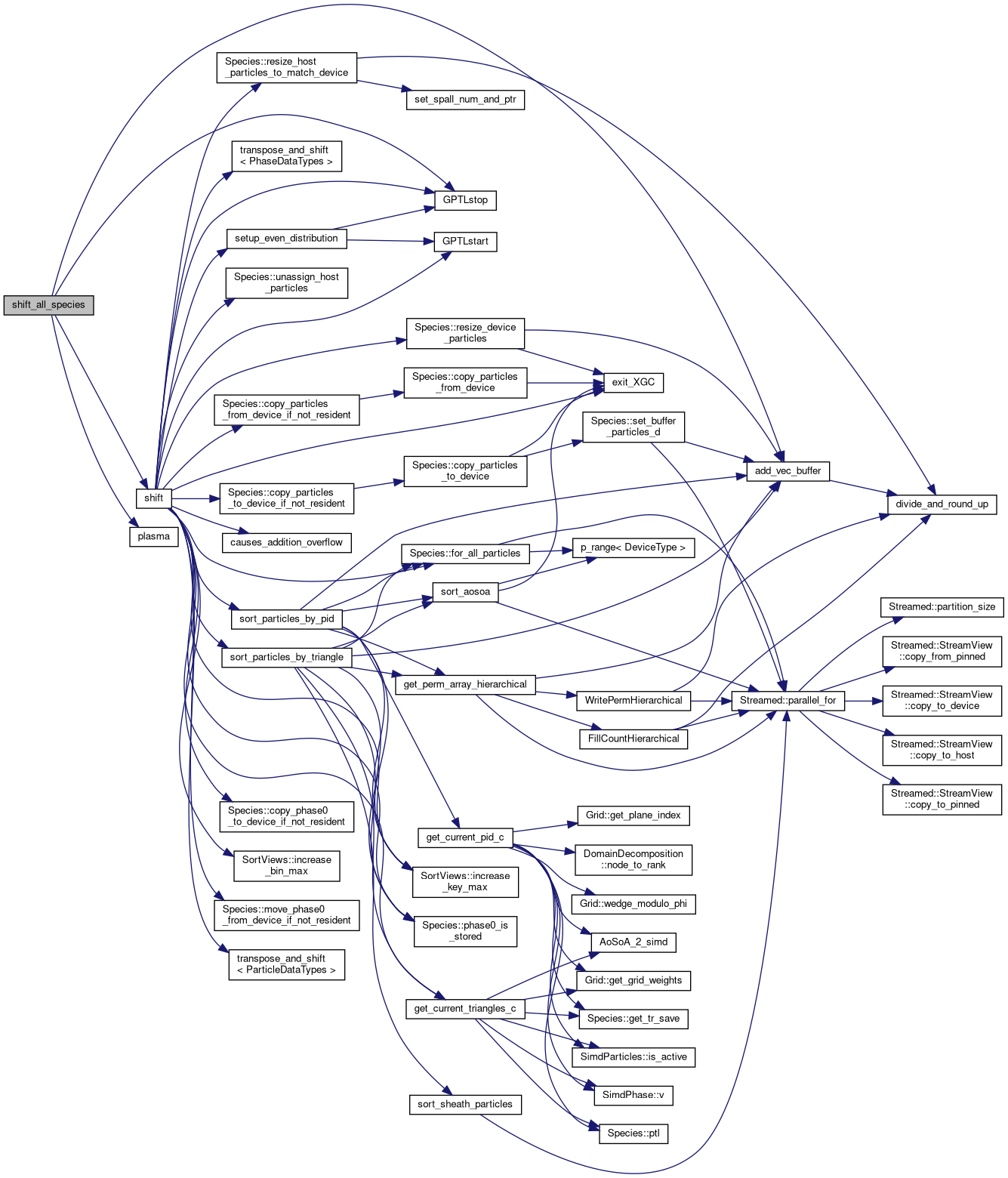 Shifts particles between MPI ranks. First the particles are sorted by destination rank The particles are packed into a buffer and sent with an MPI all-to-all Then they are unpacked from the receiving buffer back into the particle AoSoA The same is done for phase0, needed for ions